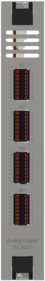 The 24V Analog Output card amplifies the analog signal voltage of HIL Simulator devices from ±10V to ±24V, by applying a gain factor of 2.4.