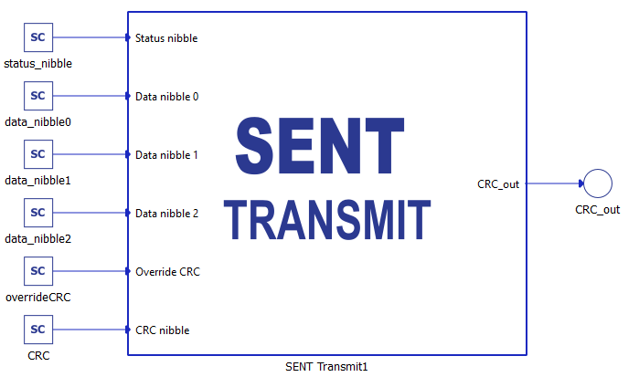The SENT Transmit component implements the transmission of the SENT protocol. This component is used to configure the SENT Transmit parameters as described in the SENT Protocol introduction.