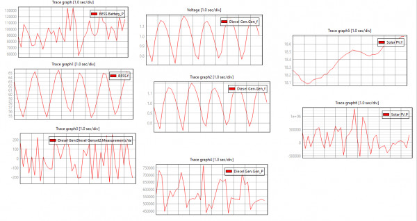 My microgrid model is not is not working properly because I am having challenges configuring the couplings between elements. The frequency measurement of my PV system is dropping fast and the grid forming diesel generator is severely distorted. Could someone advice me the best way to set the couplings.