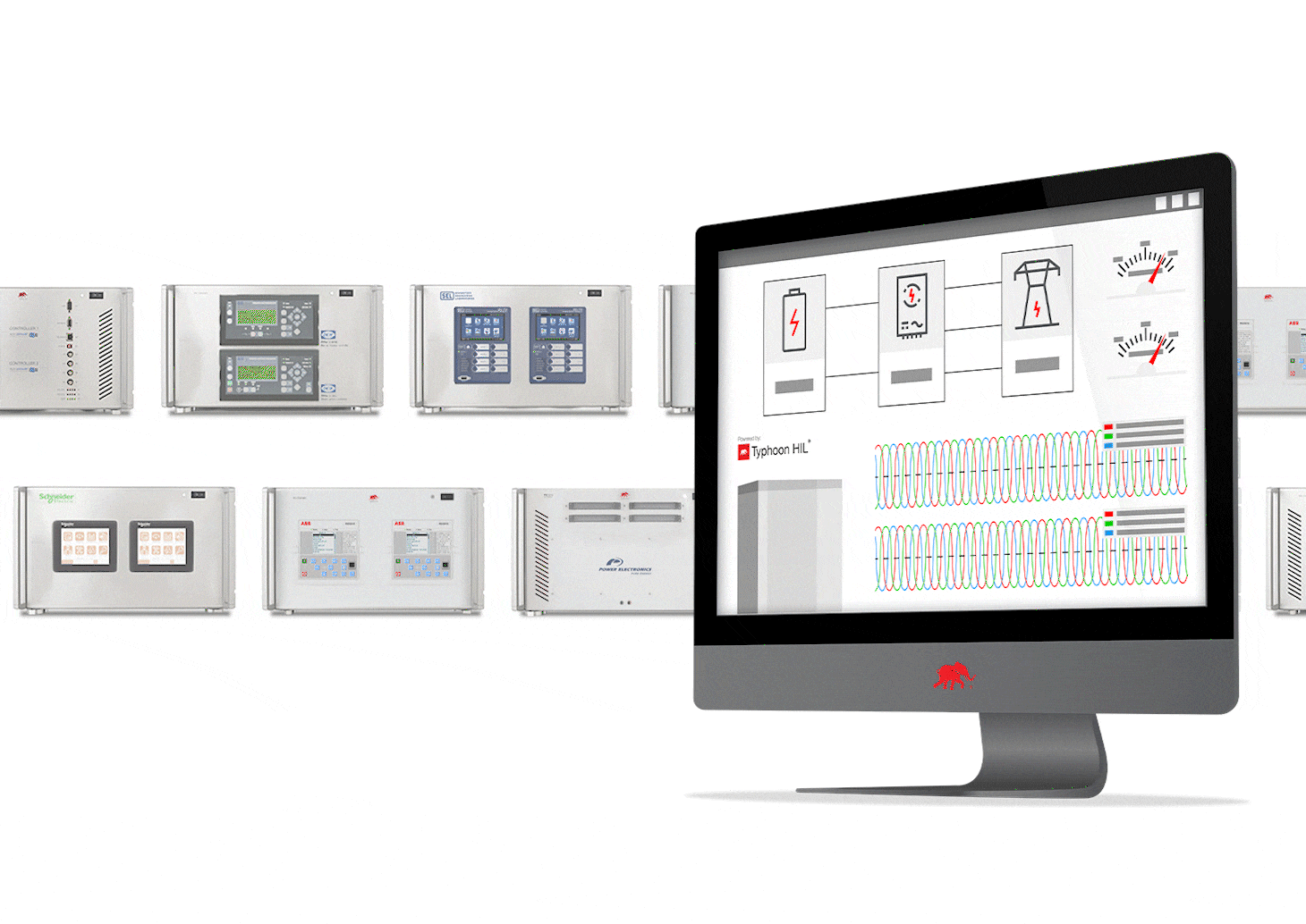 Typhoon HIL addresses this with Controller Hardware-in-the-Loop (C-HIL), a turnkey, high-fidelity environment that connects real controller hardware directly to a real-time model. Engineers can simulate any operating scenario, validate firmware safely, and verify multi-vendor interoperability — whether for grid-scale, industrial applications, or standalone power electronics devices, all without energizing a physical system.