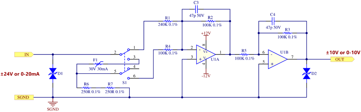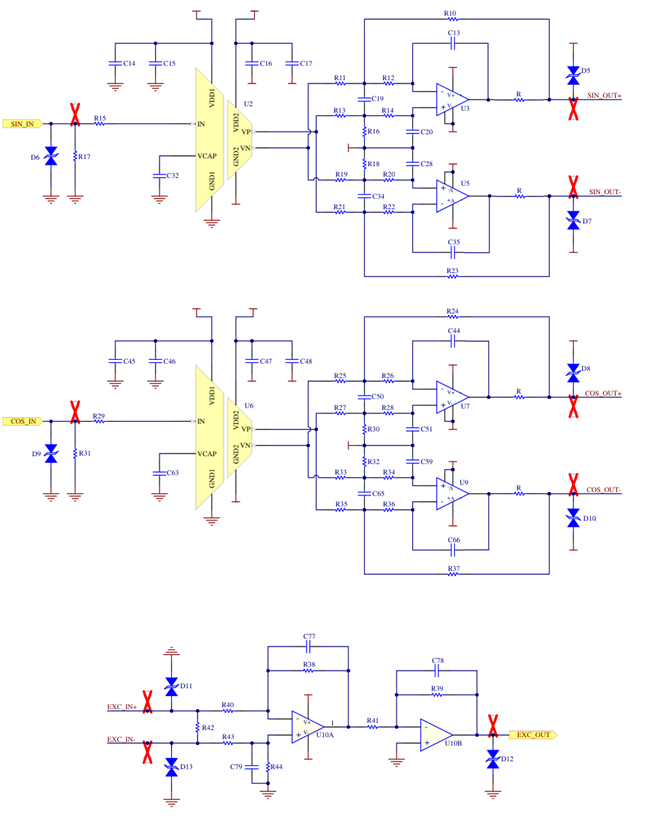 Figure 3 and Figure 4 show simplified schematics of the Resolver Stage channel and the Analog Input channel, respectively.