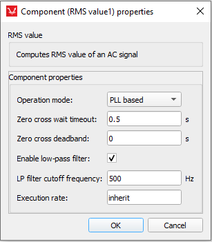 The RMS value component outputs the root mean square (RMS) value of an AC signal.