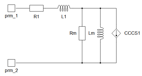 Figure 3. Primary side of a transformer with Core model set to Lm/Rm neglected