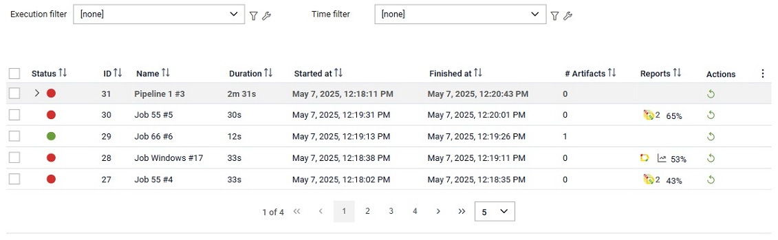 An Execution is created whenever a Job or Pipeline is started. You can see the most important information about executions in the Executions table (Figure 1).